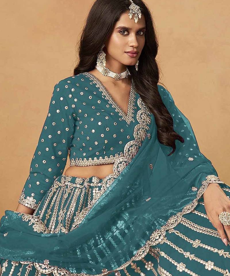 | Product Name | Teal Art Silk Heavy Thread Embroidery Gota Work Lehenga Choli | |