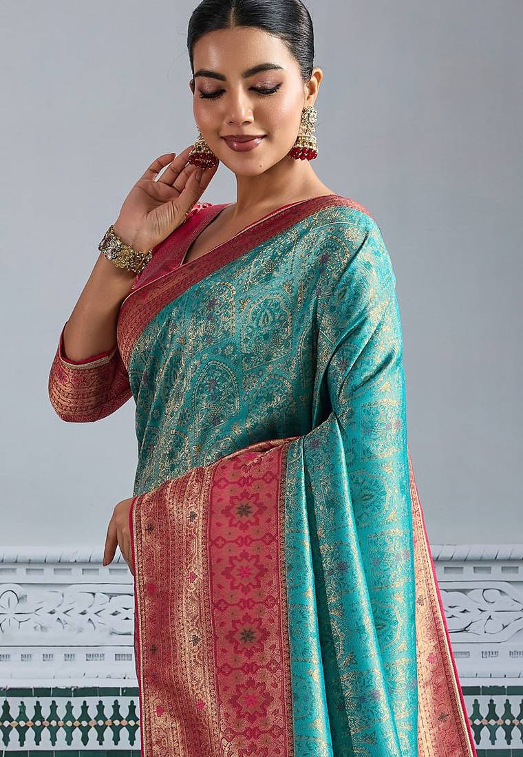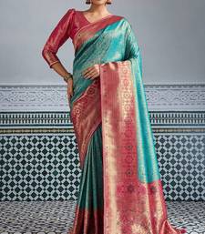 Teal kanjivaram mul silk blend zari meenakari woven saree with blouse