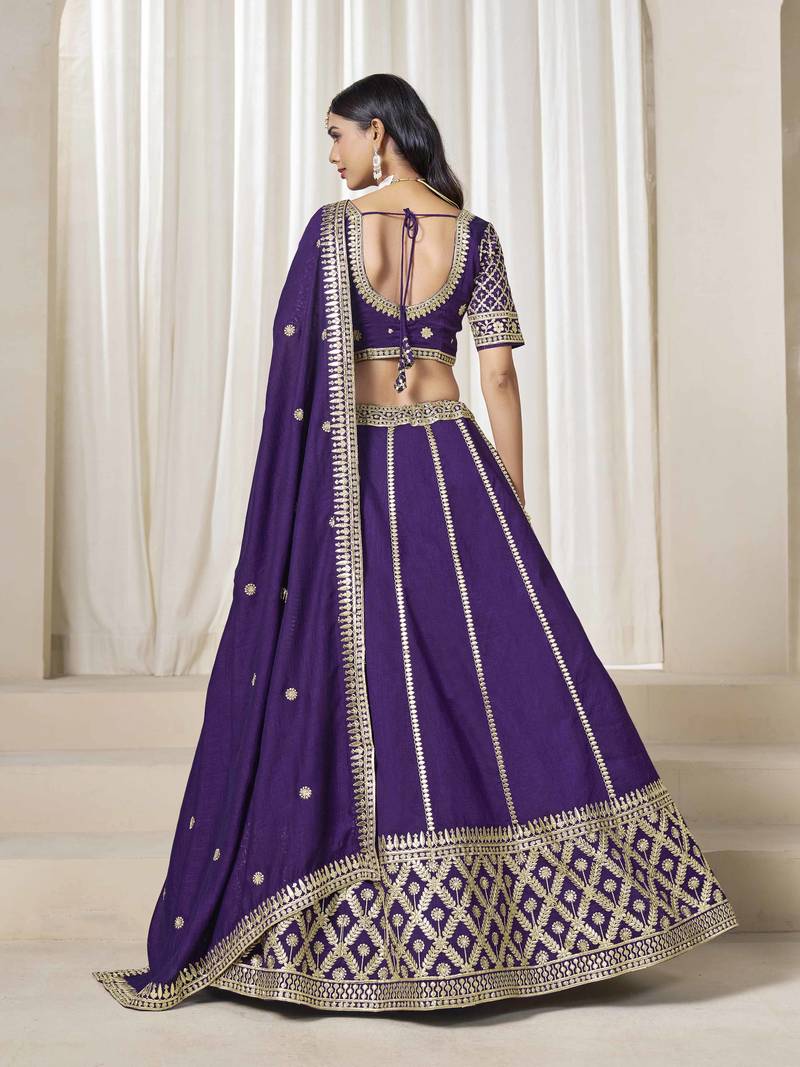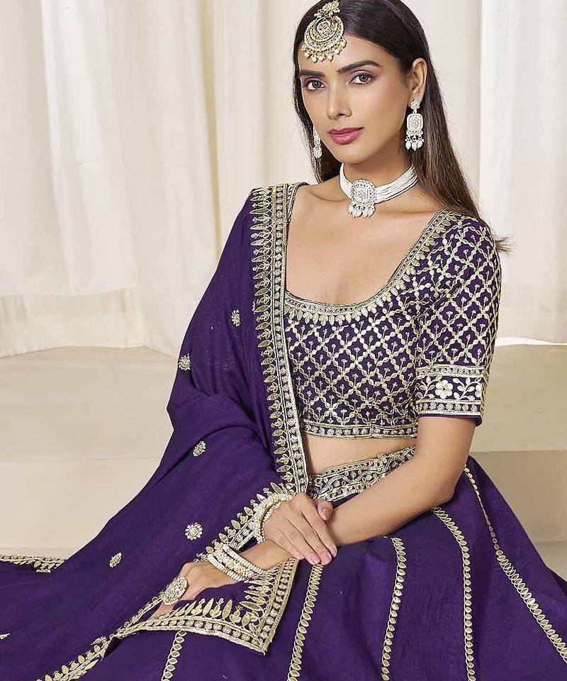 Violet art silk heavy thread embroidery with sequins work lehenga choli