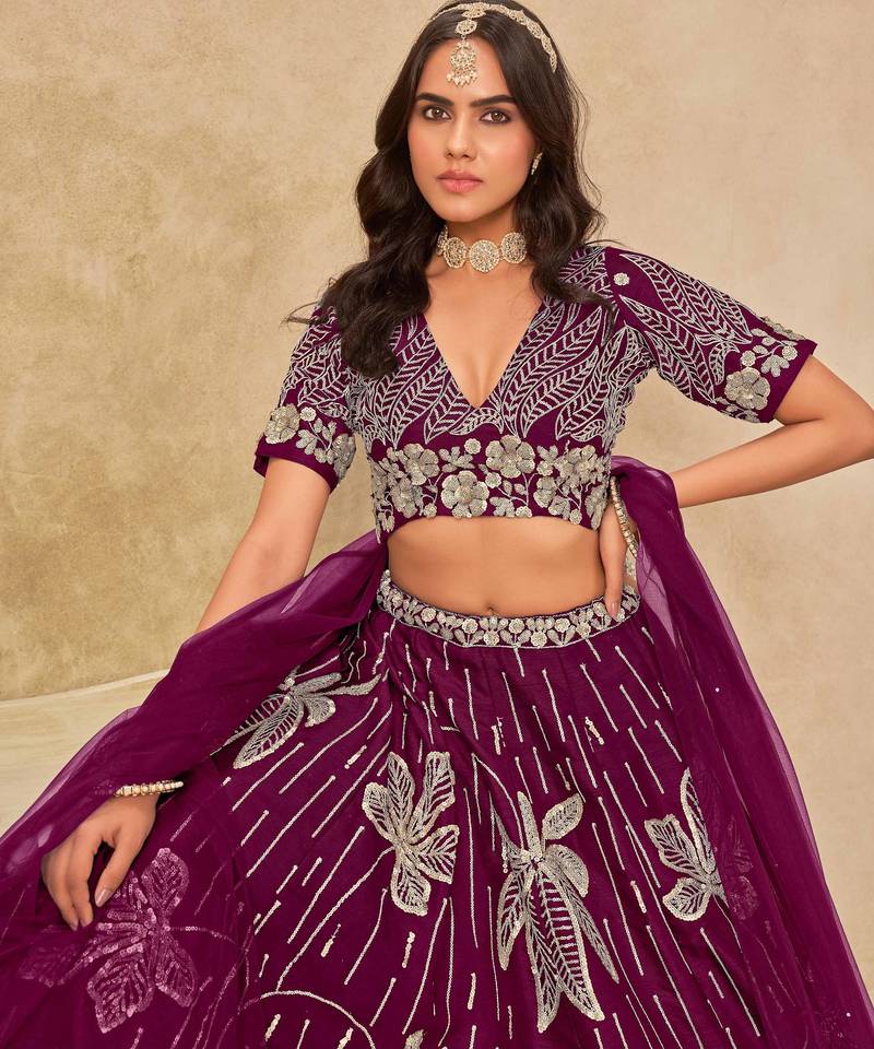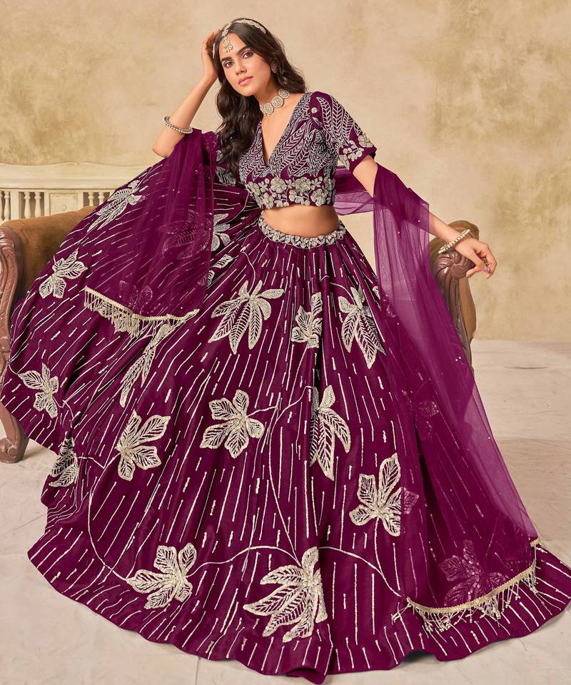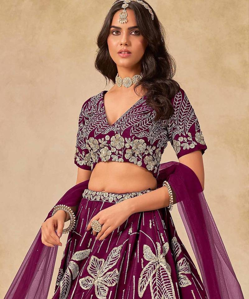 Wine art silk heavy thread embroidery with sequins work lehenga choli