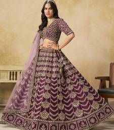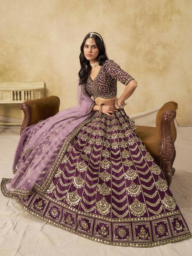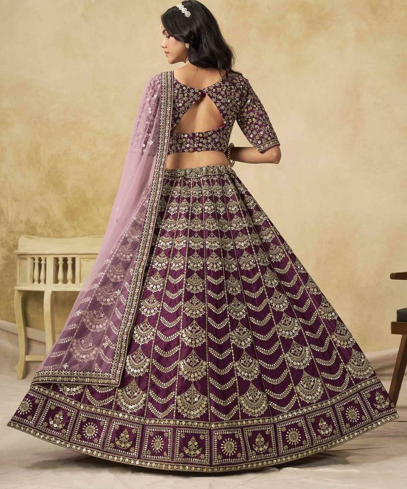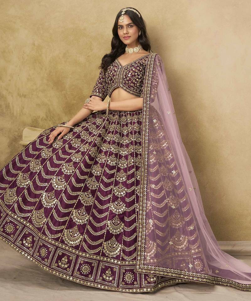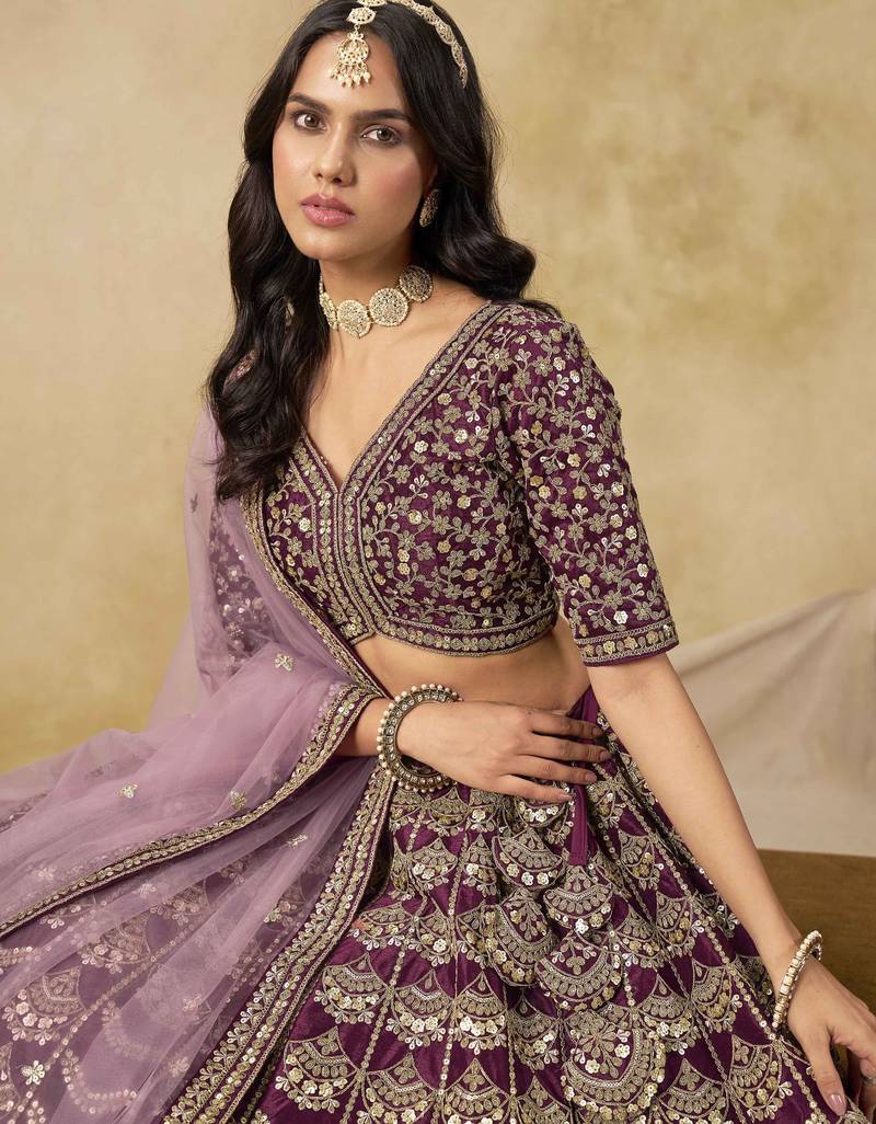 Wine art silk heavy thread embroidery with sequins work lehenga choli