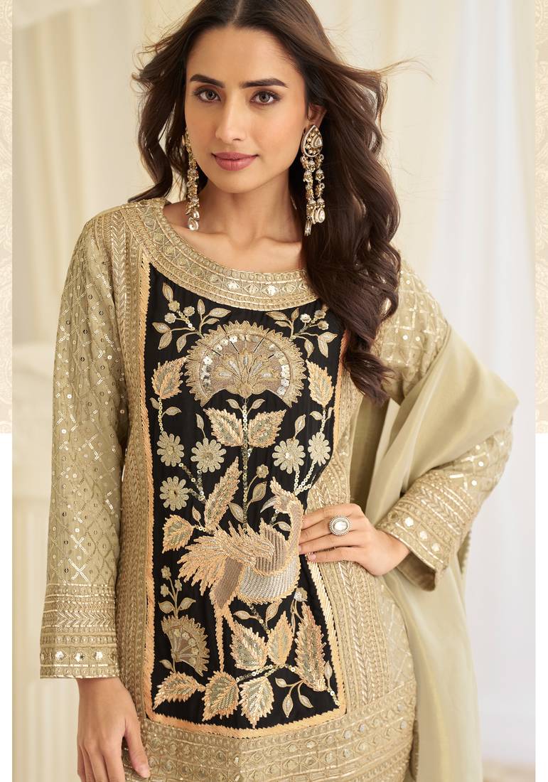 Product Name Cream Crepe Sequins Readymade Suits Free Size Up To 42