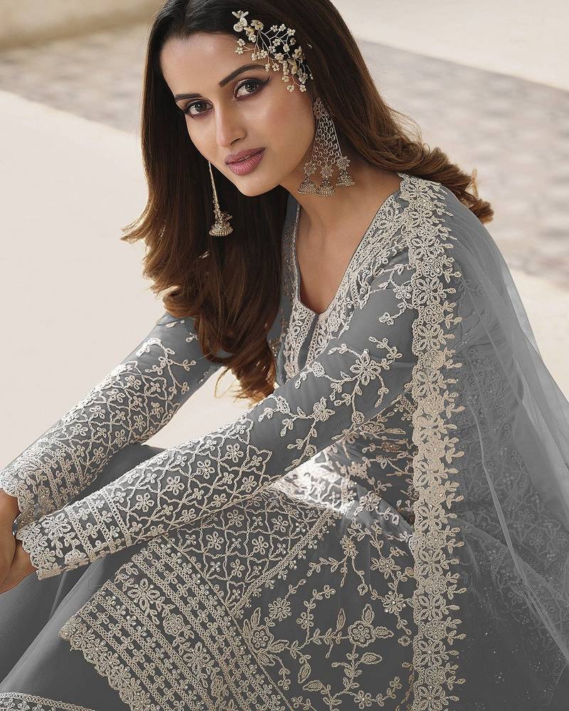 | Product Name | Grey Net Sequins Work Semi Stitched Size Up To 42 Salwar Suits | |