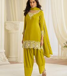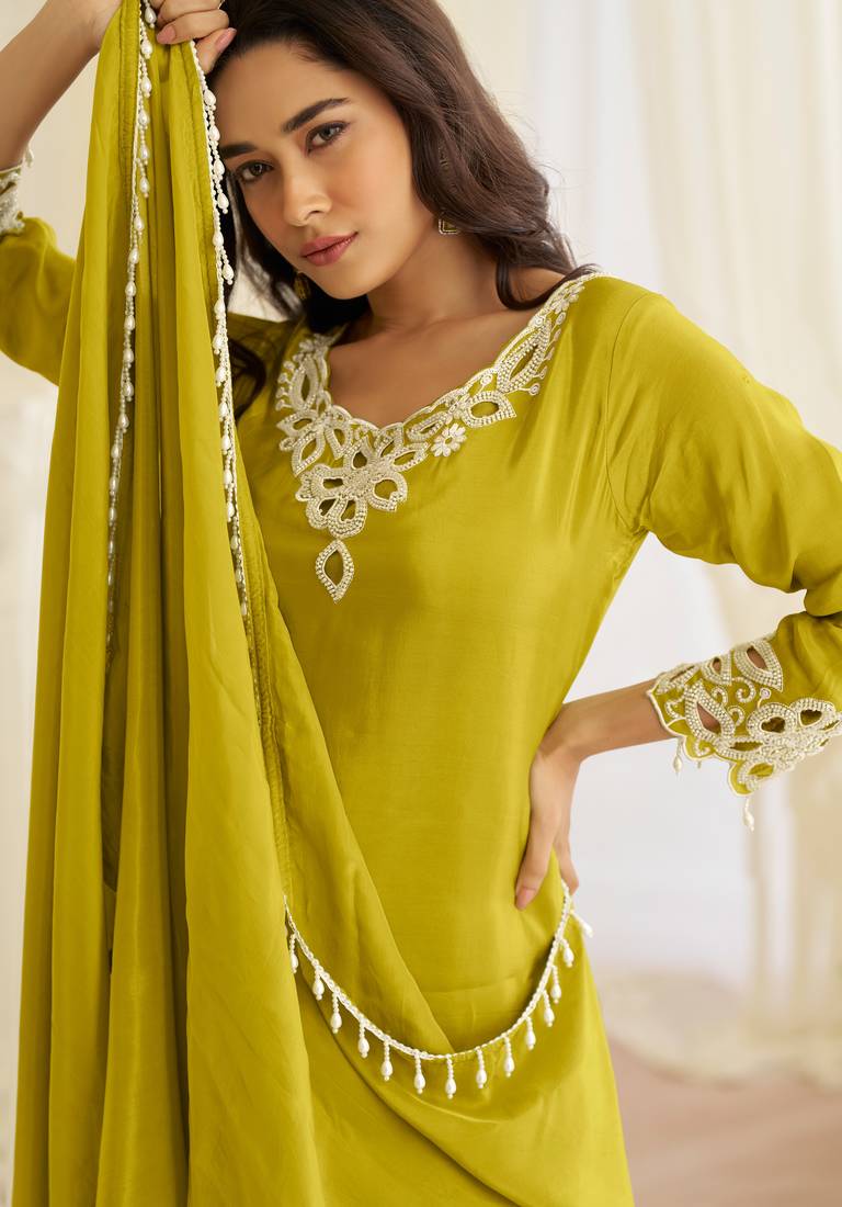 | Product Name | Lime Yellow Crepe Sequins Readymade Suits Free Size Up To 42 | |