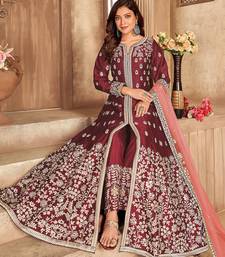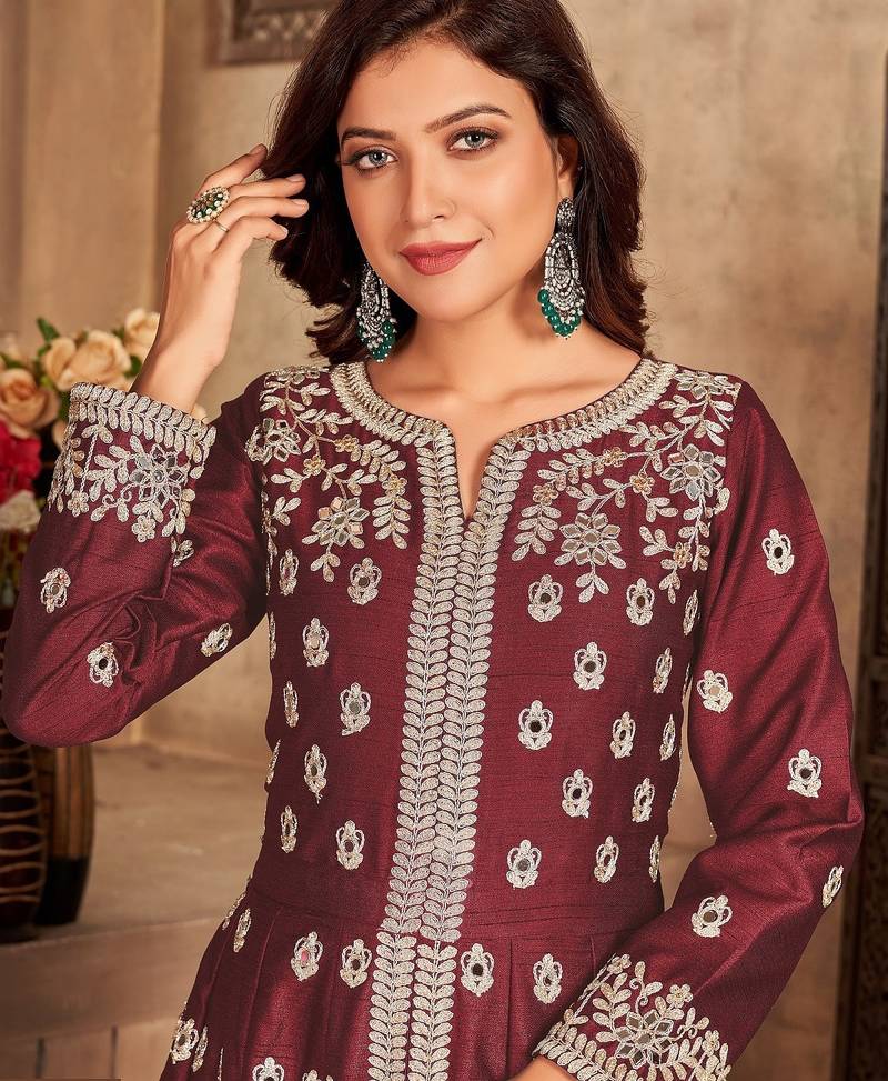 Maroon art silk sequins work semi stitched size up to 42 salwar suits