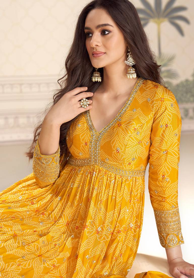 | Product Name | Mustard Art Silk Sequins Readymade Suits Free Size Up To 42 | |