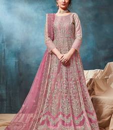 Pink net zari work semi stitched size up to 42 salwar suits