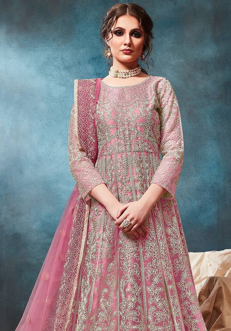 | Product Name | Pink Net Zari Work Semi Stitched Size Up To 42 Salwar Suits | |