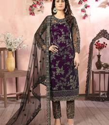Purple net zari work semi stitched size up to 42 salwar suits