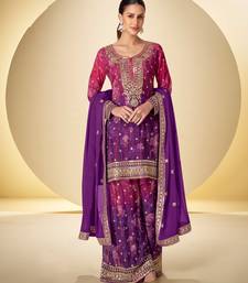 | Product Description | • Purple & Pink Chinnon Silk Anarkali Palazzo Suit.