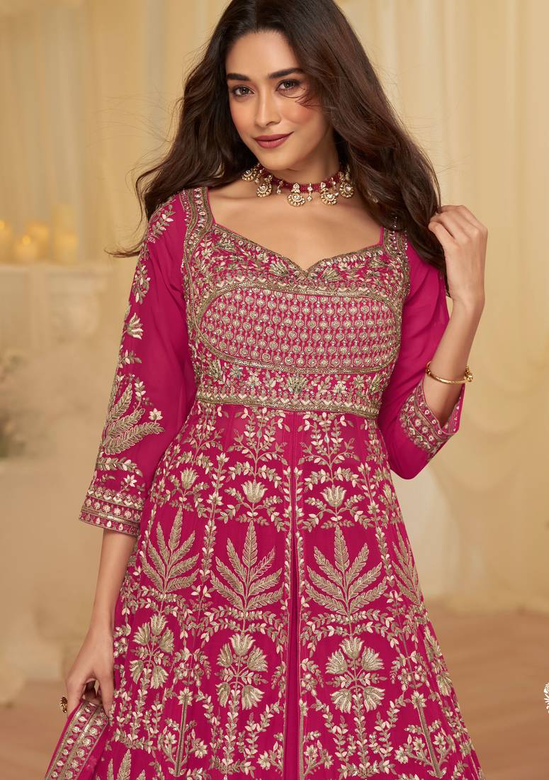 Product Name Rani Pink Georgette Sequins Readymade Suits Free Size Up To 42
