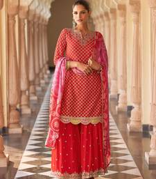 Red art silk sequins readymade suits free size up to 42
