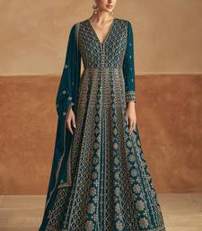 | Product Name | Teal Blue Embroidery & Sequins Work Chinnon Gown Pant Free Size Stitching (Size Upto 42") | |