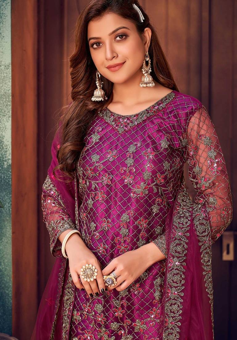 | Product Name | Wine Net Sequins Work Semi Stitched Size Up To 42 Salwar Suits | |