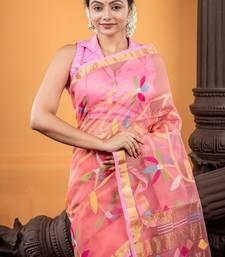 Pink hand woven silk blend cotton bengal handloom all seasons sarees