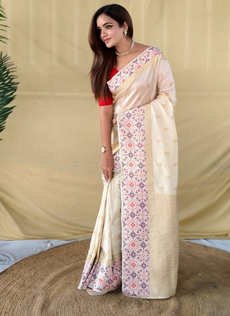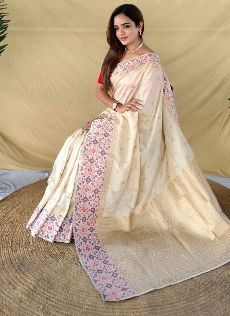 Ivory soft silk saree