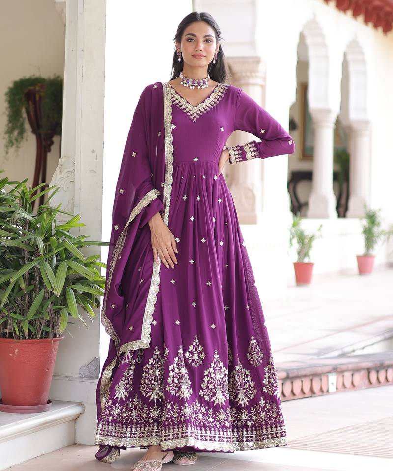 | Product Name | Magenta Vichitra Silk Sequins Zari Embroidered Kurti With Dupatta | |