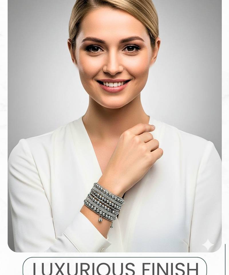 | Product Name | Metal Beads Silver Plated Daily Wear Adjustable Strechable Kada Bangle Bracelet | |