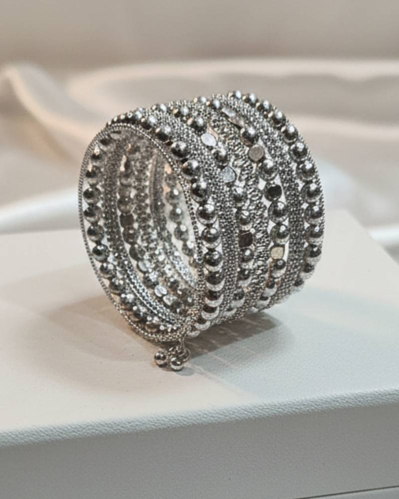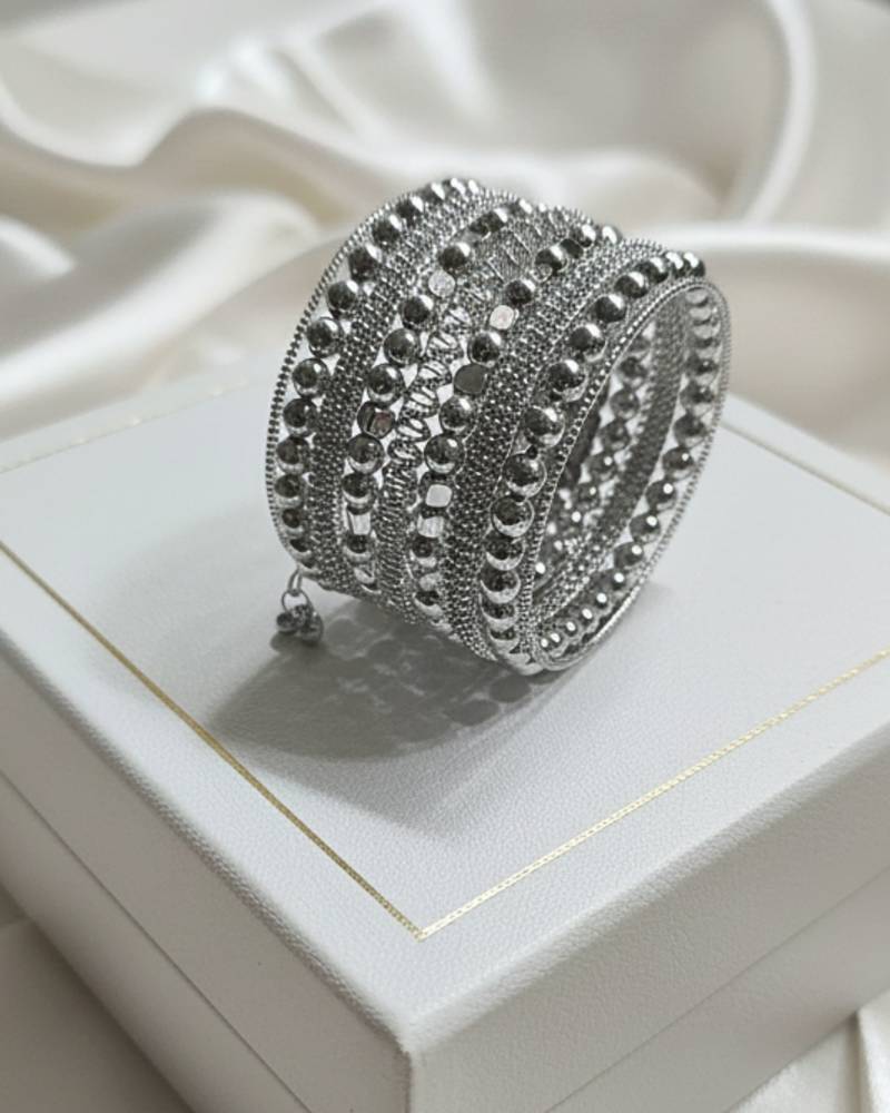 Metal beads silver-plated daily wear adjustable strechable kada bangle bracelet