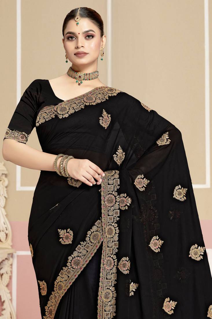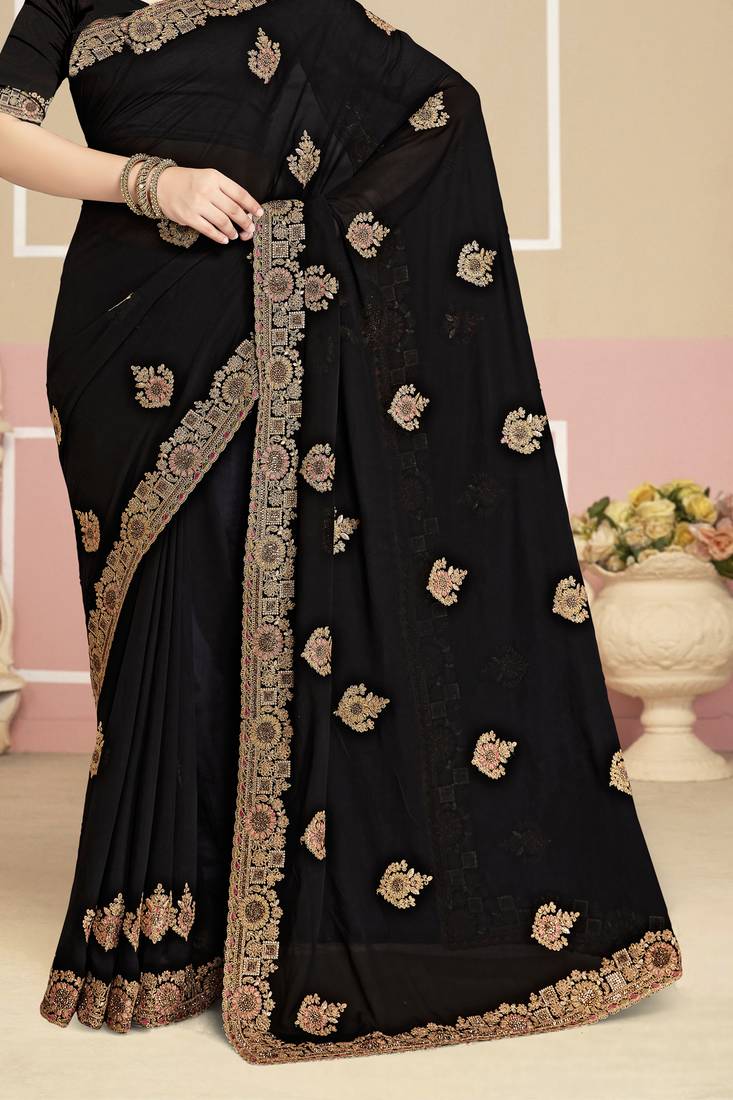 | Product Name | Black Sequin Embroidered Work Georgette Designer Saree For Women | |