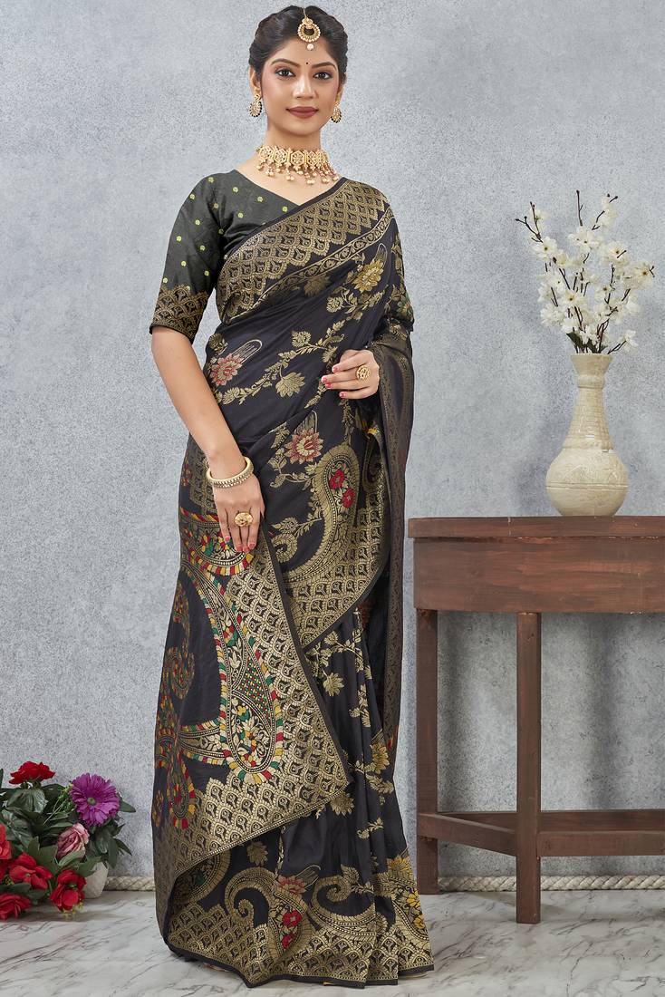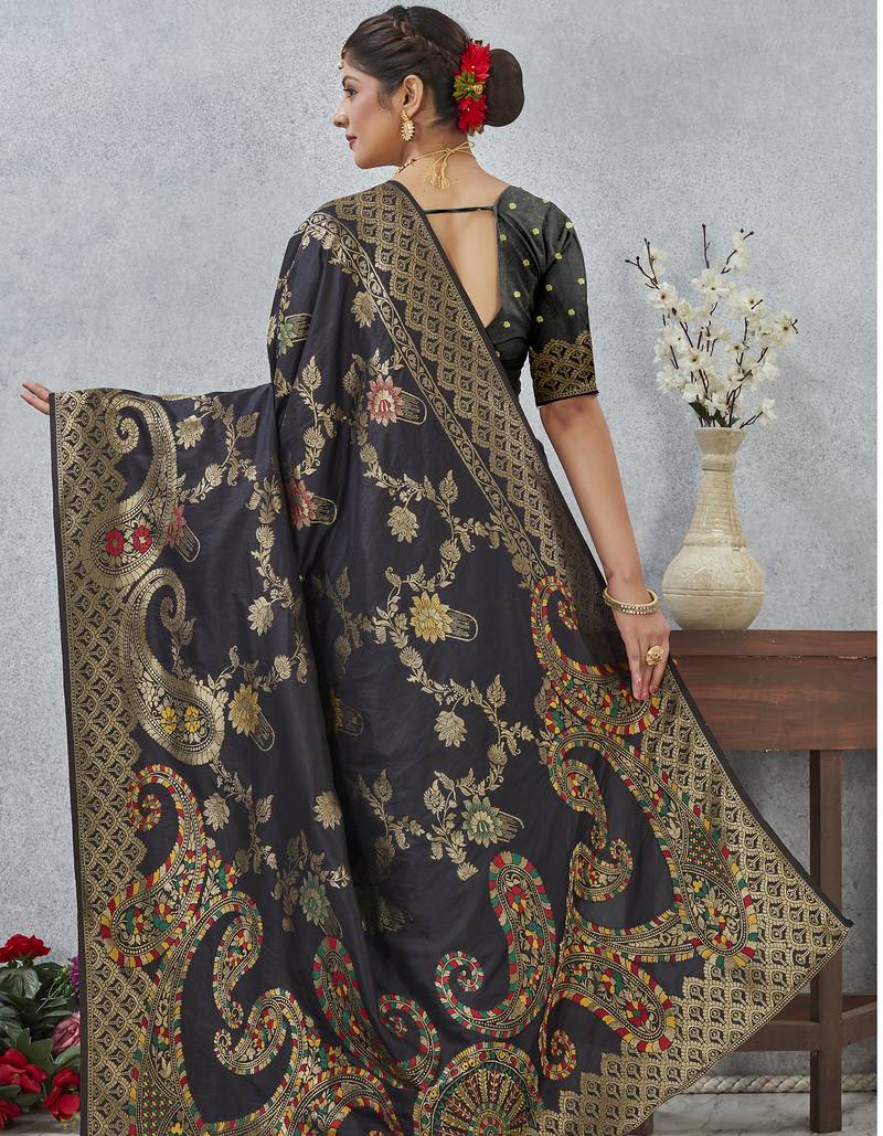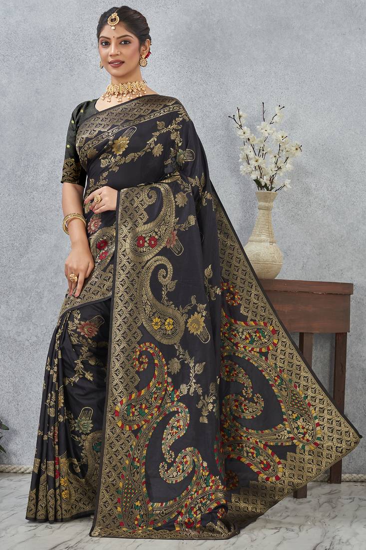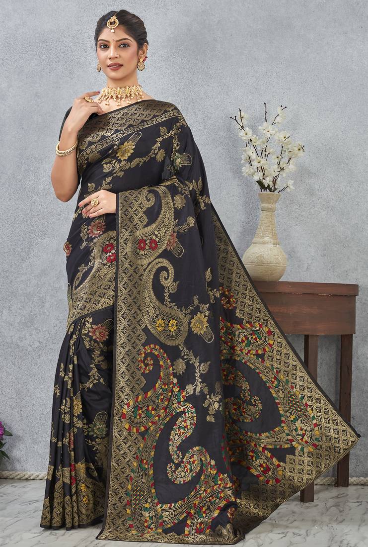Product Name | Black Sequin Zari Resham Embroidered Banarasi Silk Saree | |