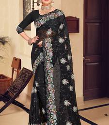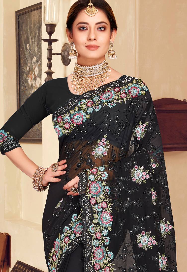 Black sequin zari resham stone embroidered georgette designer saree for women