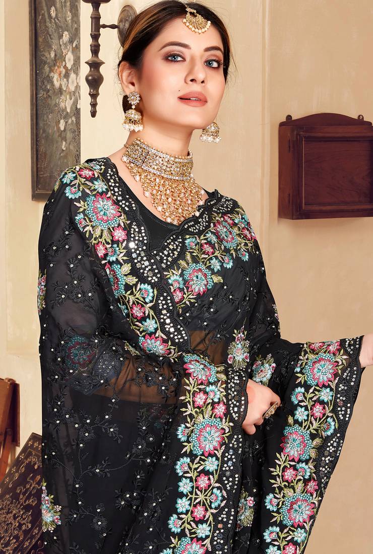 | Product Name | Black Sequin Zari Resham Stone Embroidered Georgette Designer Saree For Women | |