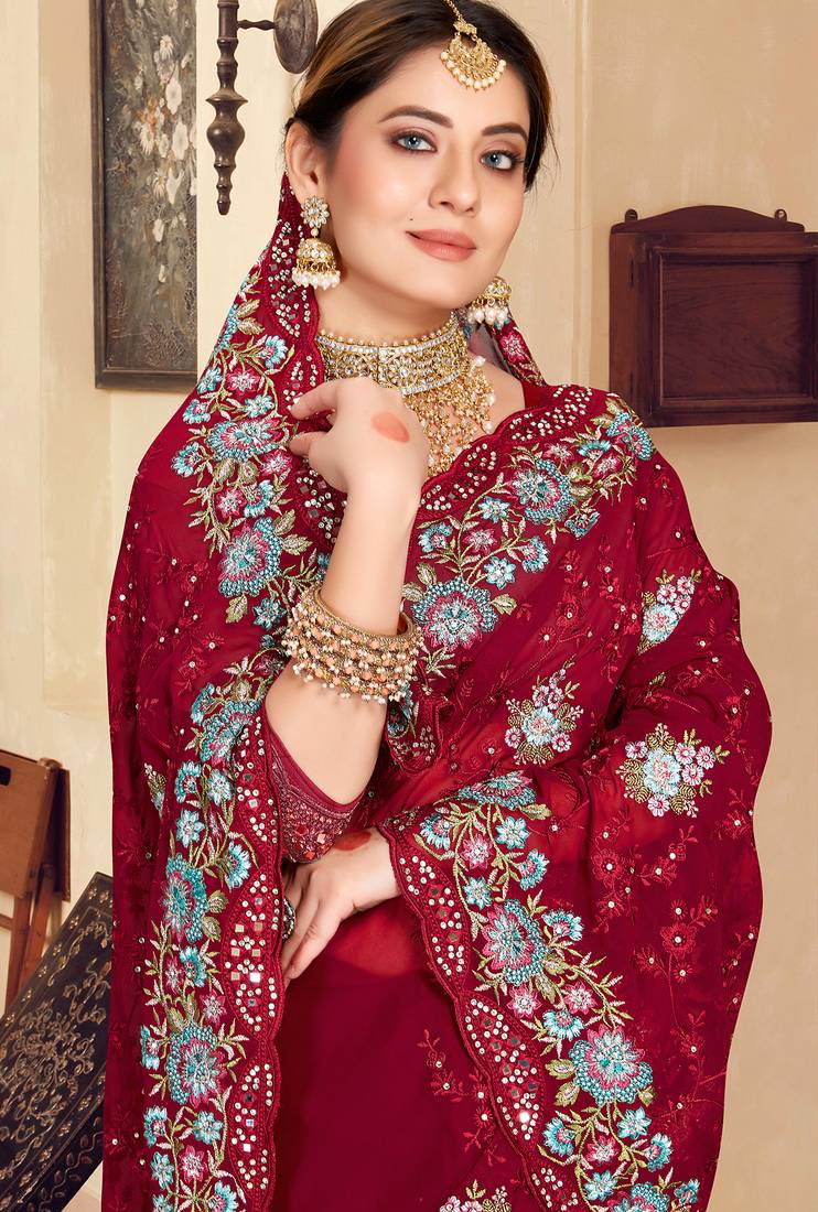 | Product Name | Maroon Sequin Zari Resham Stone Embroidered Georgette Designer Saree For Women | |