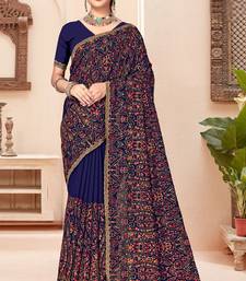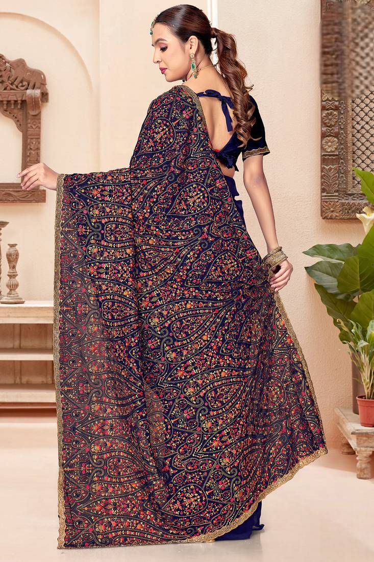 Navy blue kashmiri resham embroidery work georgette saree for women