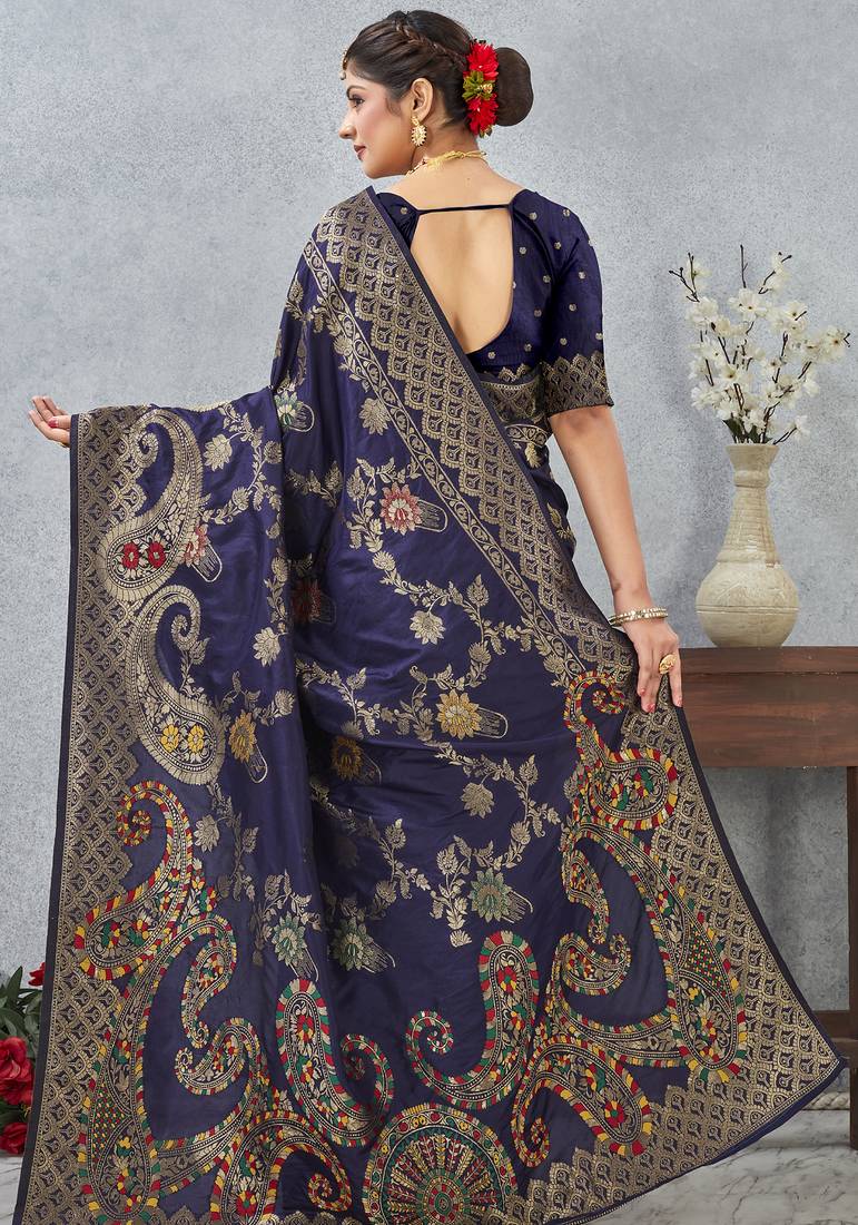 Navy blue sequin zari resham embroidered banarasi silk saree