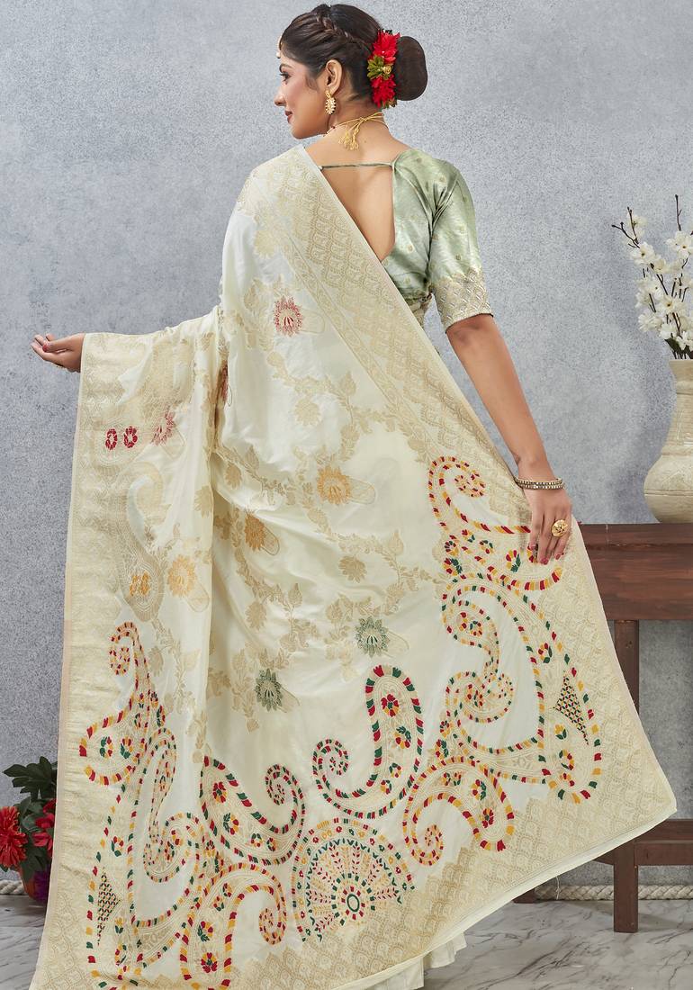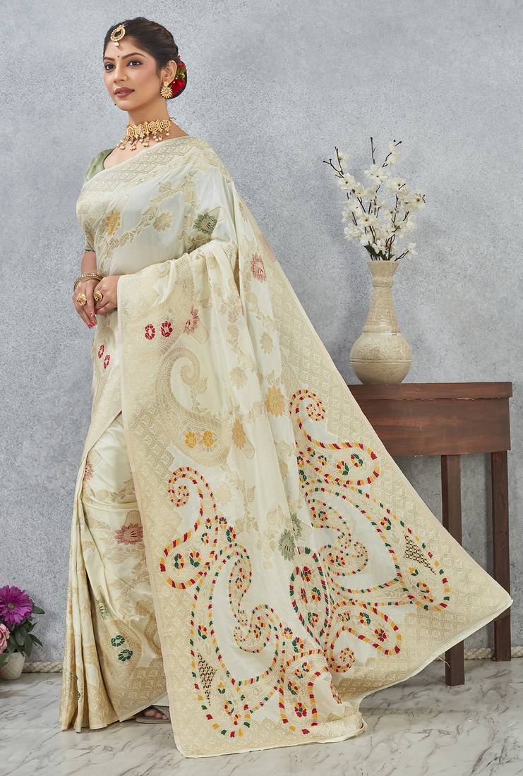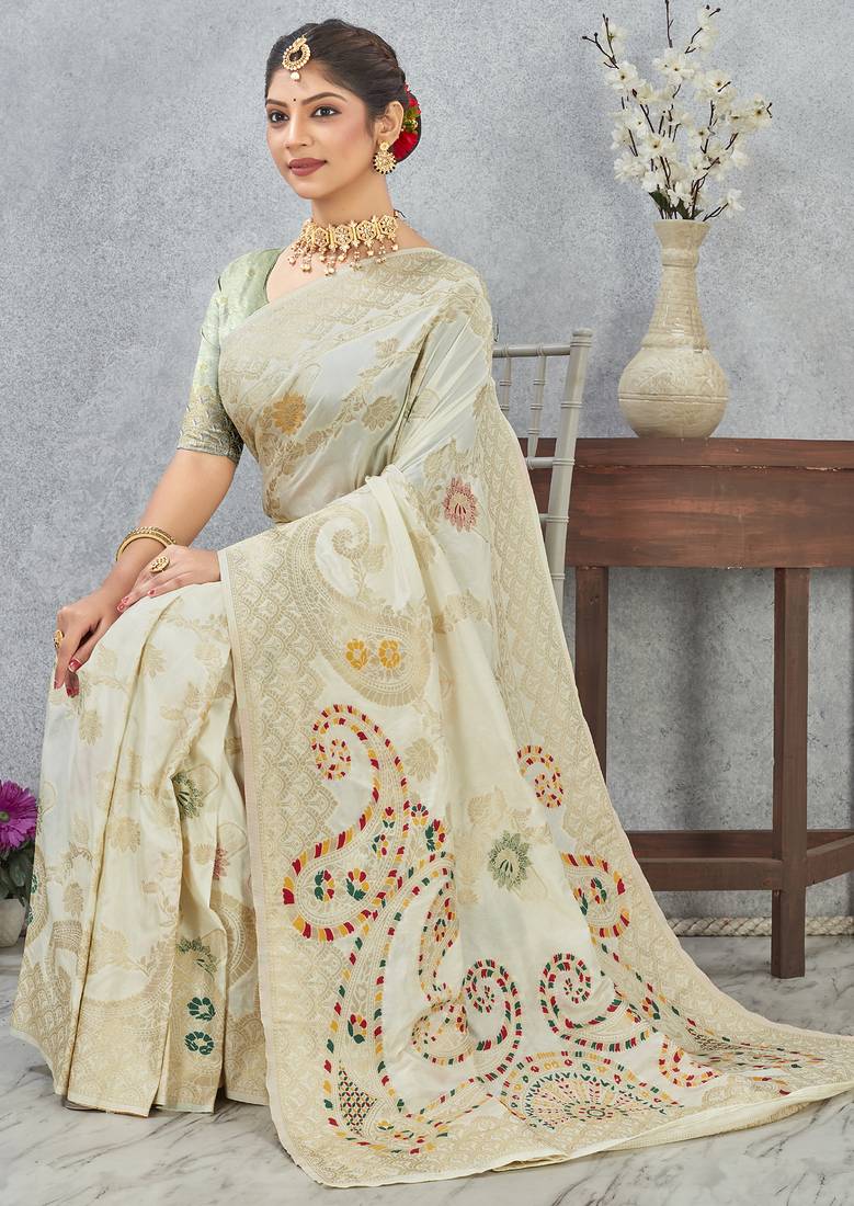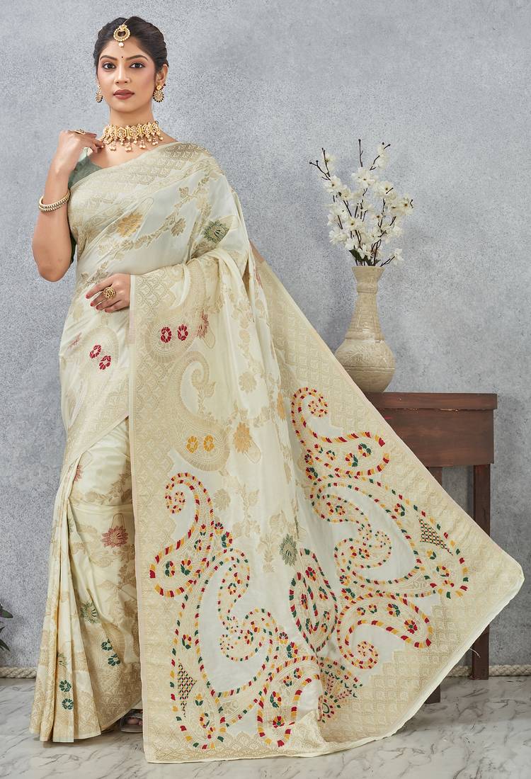 Product Name | Off White Sequin Zari Resham Embroidered Banarasi Silk Saree | |