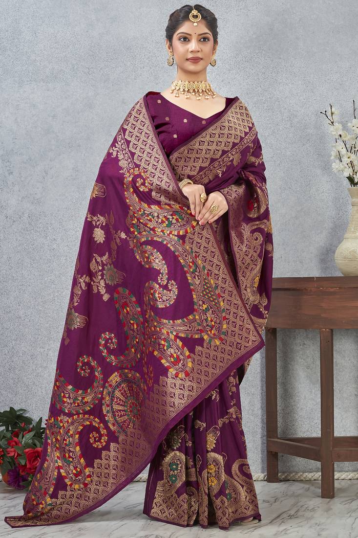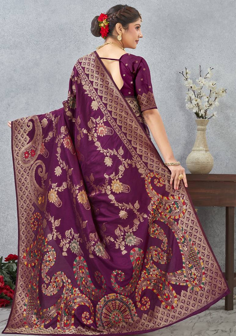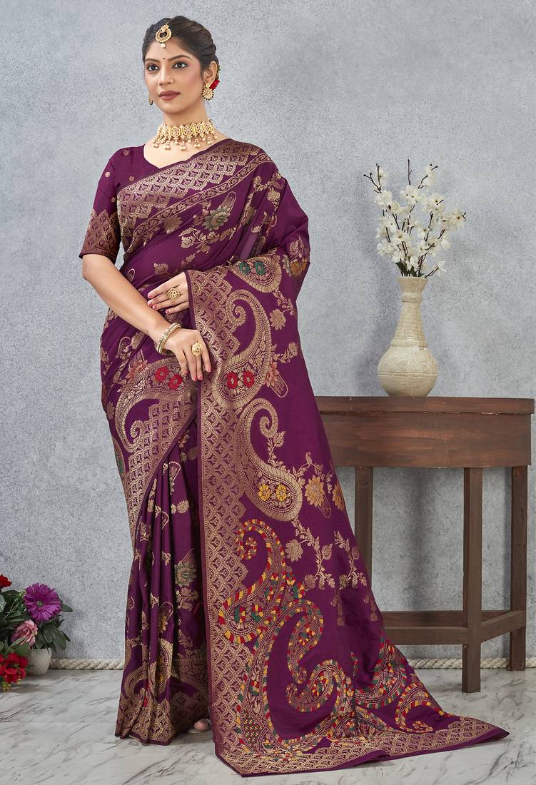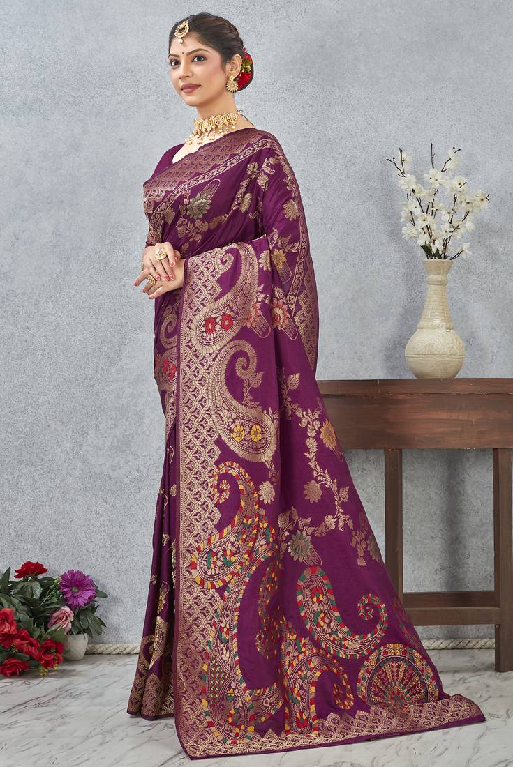 Product Name | Purple Sequin Zari Resham Embroidered Banarasi Silk Saree | |