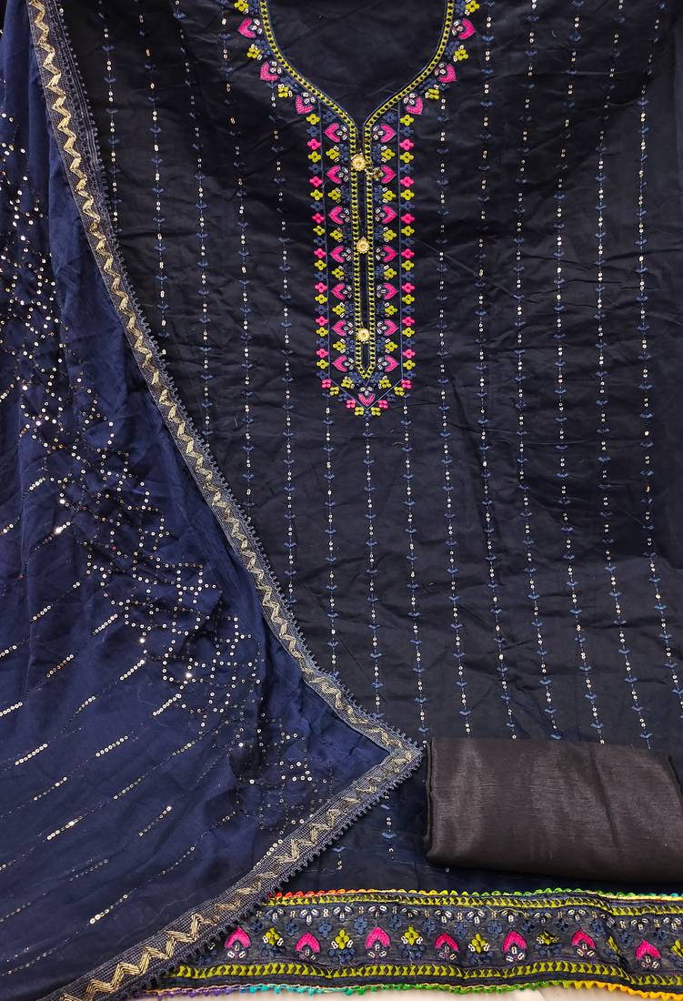 | Product Description | Women's Blue Unstitched Heavy Multi Embrodiery With Fancy Dupatta Chanderi Cotton Dress Material Having Blue Color Bottom Of Santoon Fabric And Blue Color Dupatta Of Chinon Material With Charming Blue Colour In Chanderi Cotton Santoon Chinon Fabric With Work Of Heavy Multi Embrodiery With Fancy Dupatta|| Images Are For The Referance Purpose Only, Color Of The Actual Product May Little Vary From The Image Due To Screen Resolution |