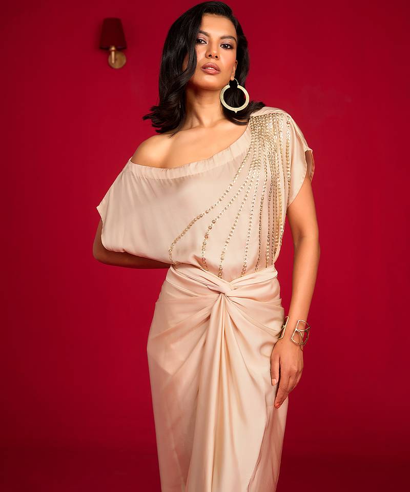 | Product Name | Beige Embroidered Satin Co Ord Set | |