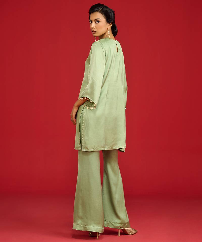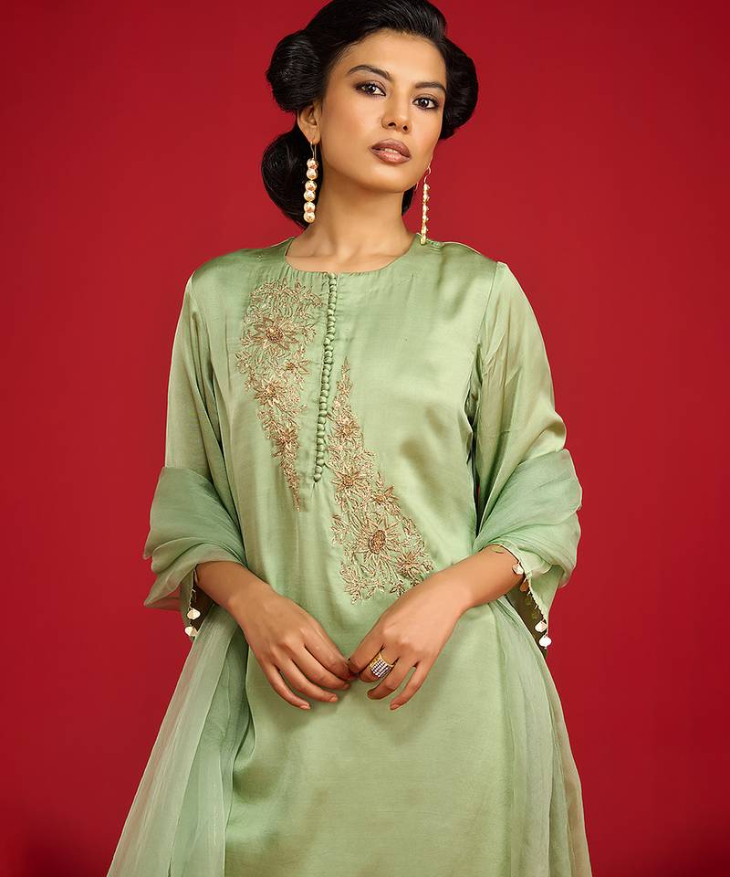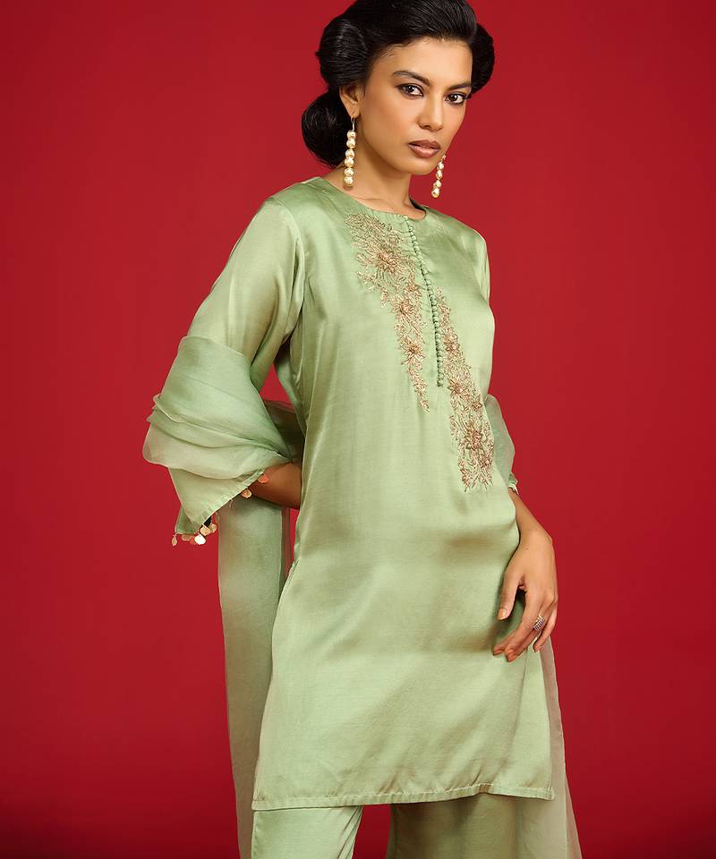 | Product Name | Green Embroidered Satin Kurta Set | |