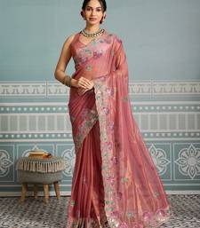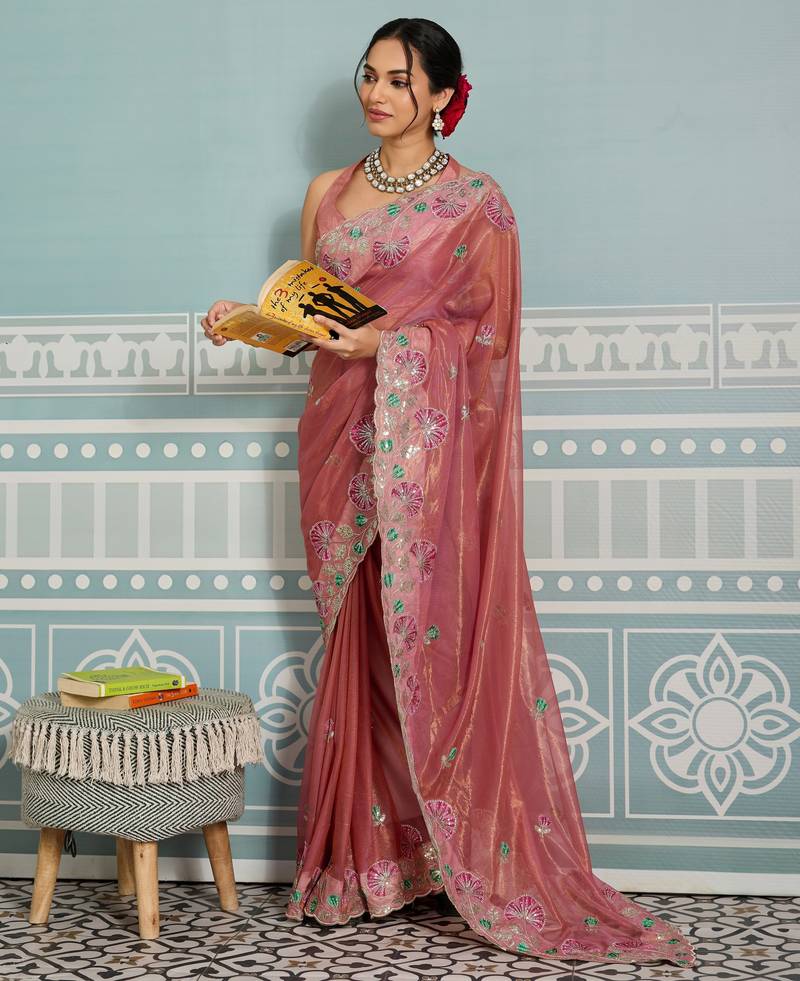 Bewitching peach embroidered frendy net traditional saree with blouse