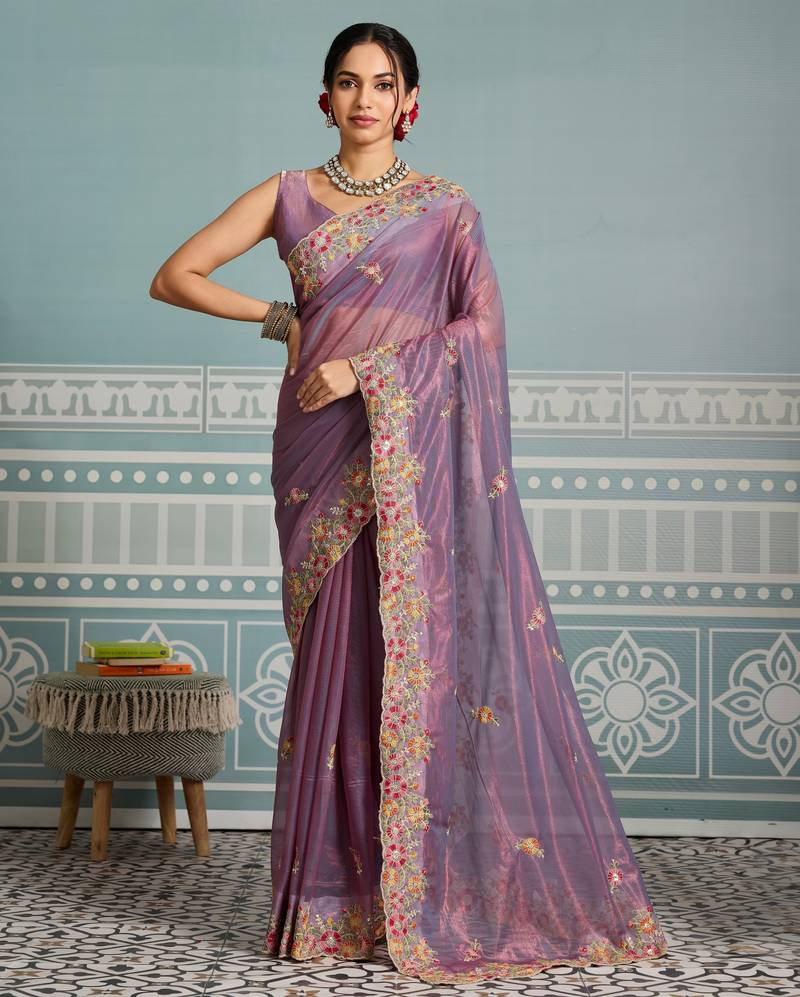 | • | Saree | : | Color- Lavender / Fabric- Net |