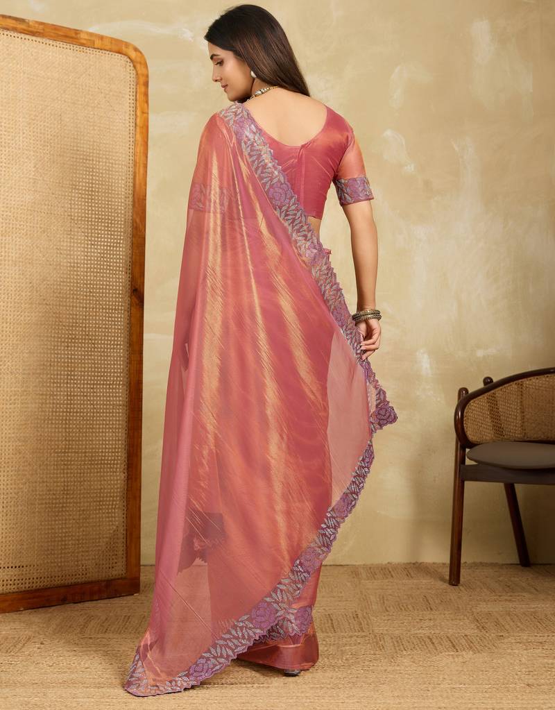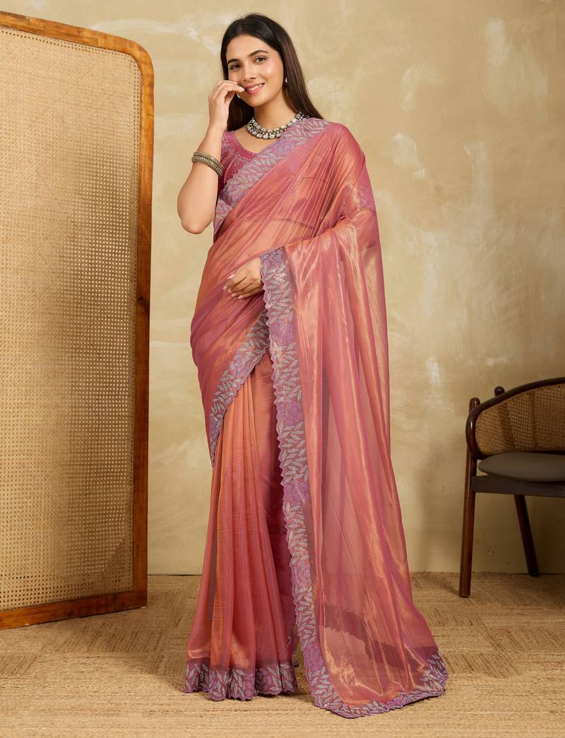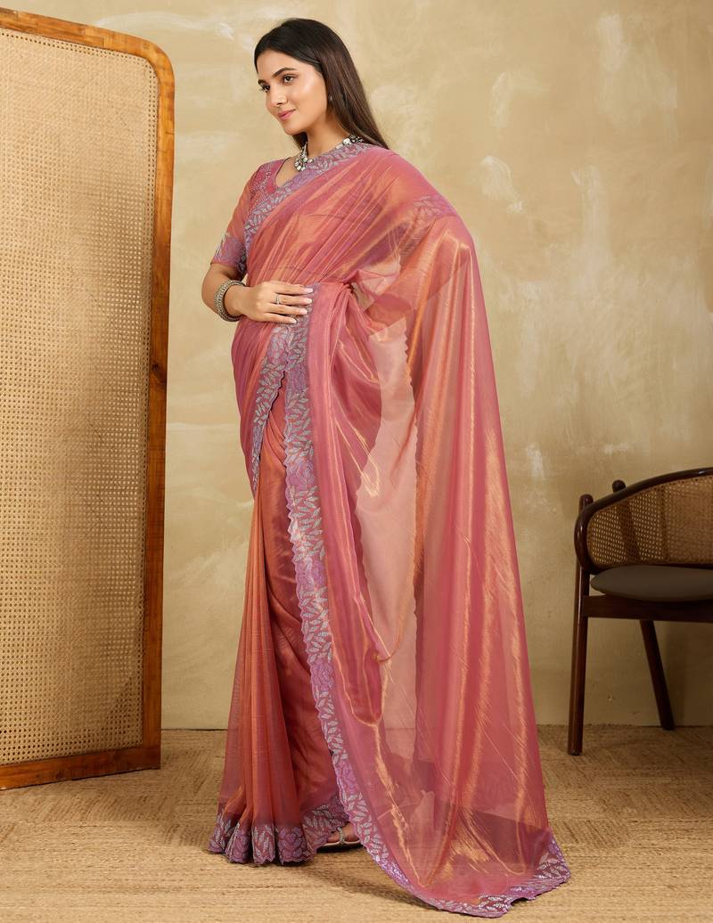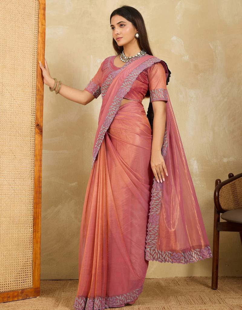 | • | Saree | : | Color- Peach / Fabric- Net |