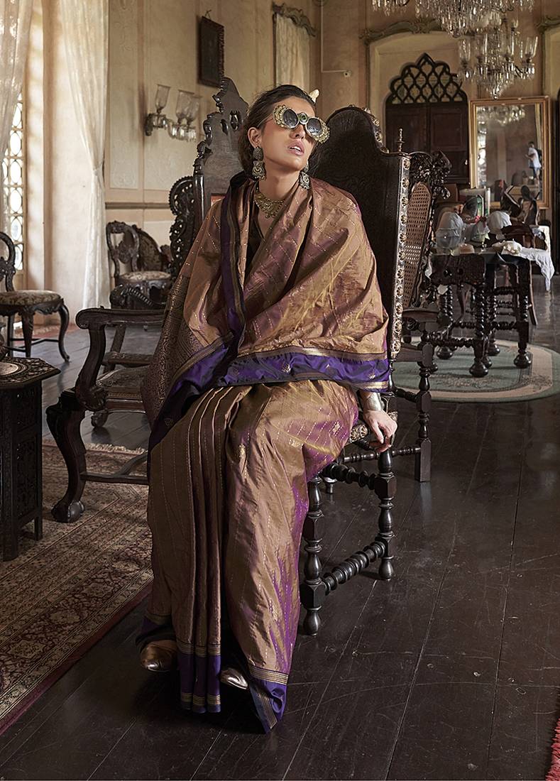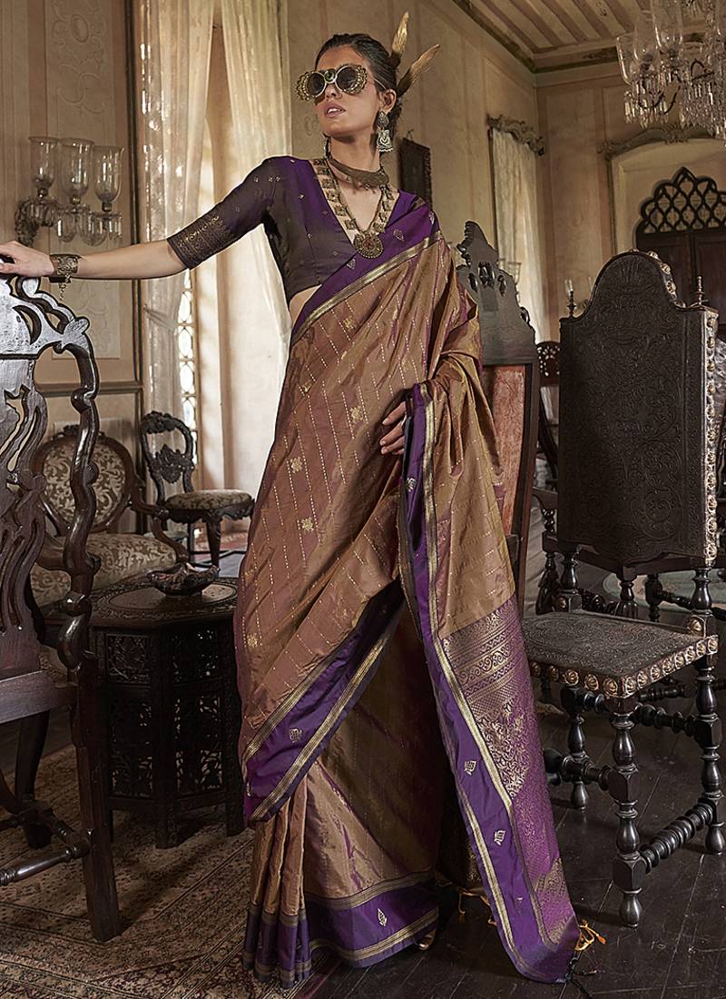 Brown exclusive tussar silk with elegant weaving work traditonal saree