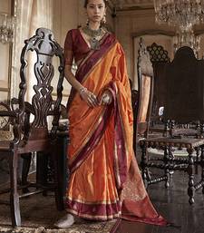 Orange exclusive tussar silk with elegant weaving work traditonal saree