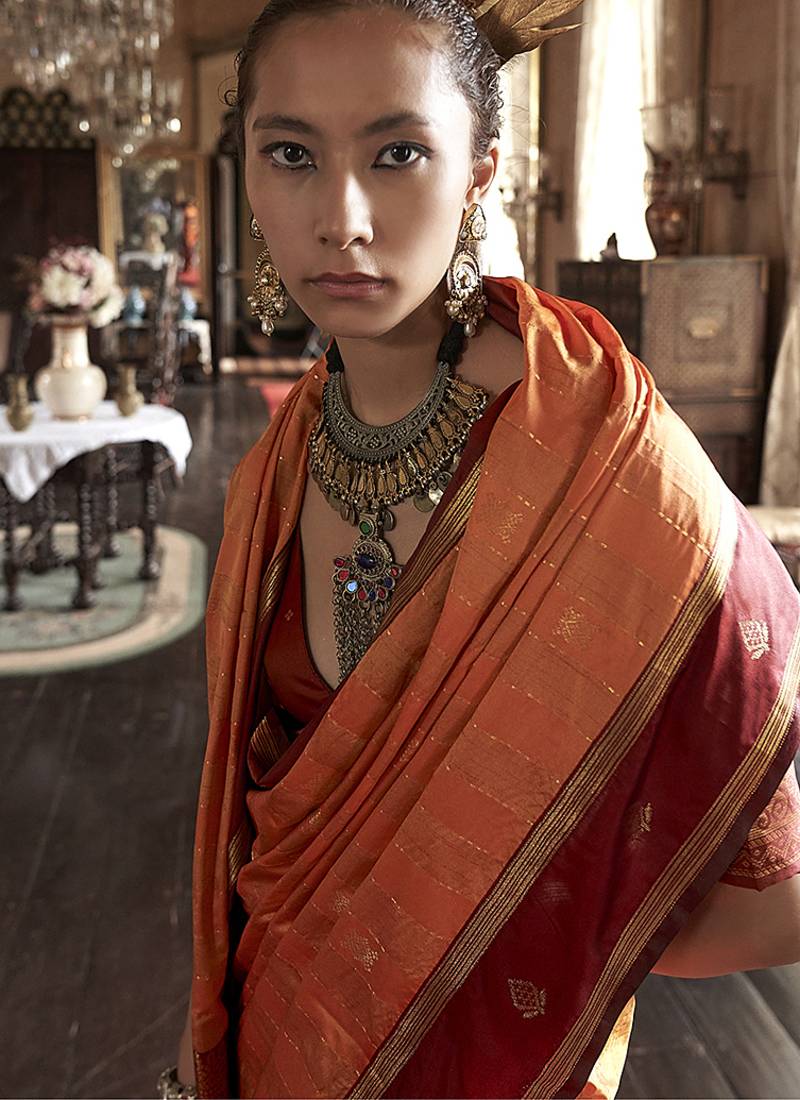 Product Name | Orange Exclusive Tussar Silk With Elegant Weaving Work Traditonal Saree | |