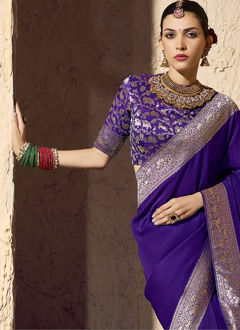 | Product Description | This Purple Faux Crepe And Georgette Classic Saree Is Accenting The Interesting Feeling. Beautified With Weaving Work All Synchronized Effectively With The Pattern And Style And Design Of The Dress. Comes With Unstiched Blouse. (Slight Variation In Color, Fabric & Work Is Possible. Model Images Are Only Representative.) |