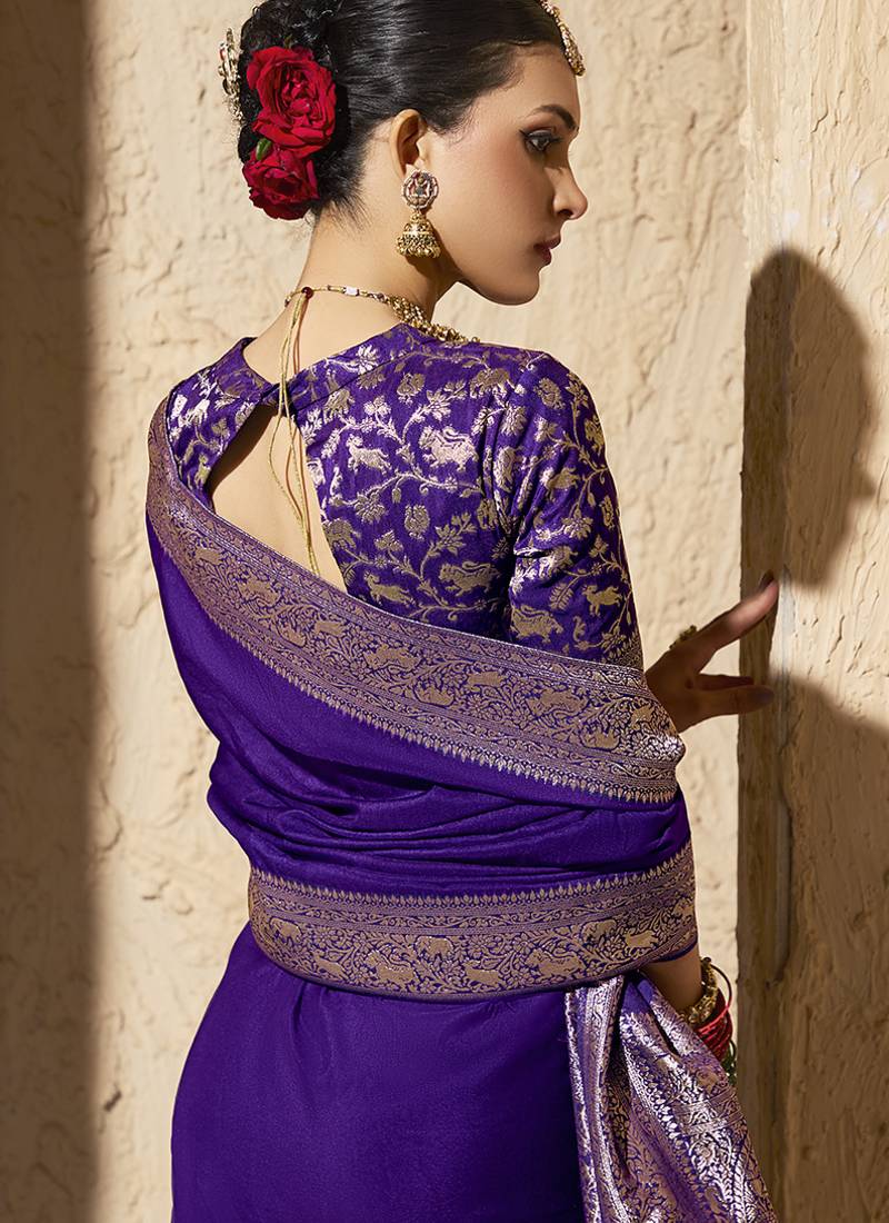 | Product Name | Purple Faux Crepe Georgette Zari Weaving Work Saree | |