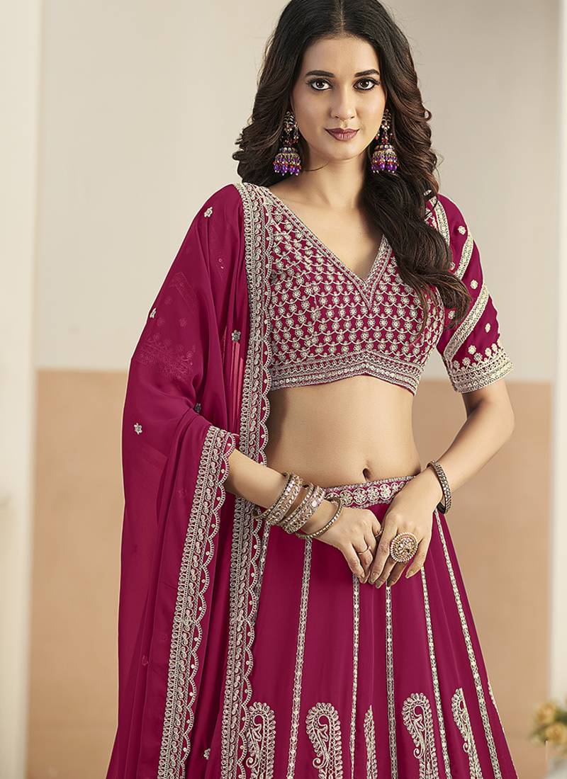 Rani pink faux georgette embroidered lehenga choli