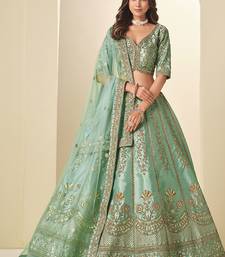 Green embroidered art silk lehenga choli with matching dupatta