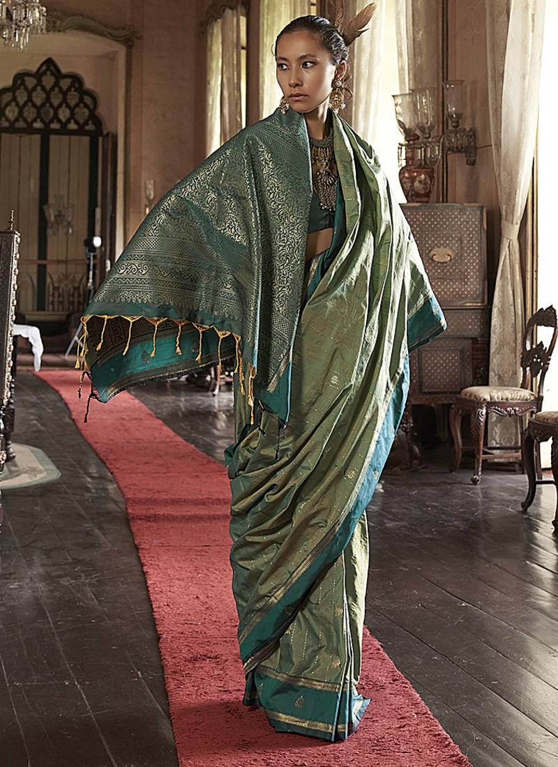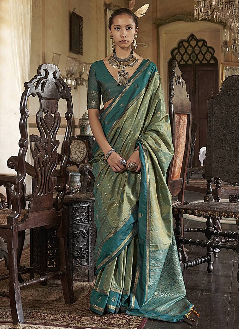 Sea green exclusive tussar silk with elegant weaving work traditonal saree