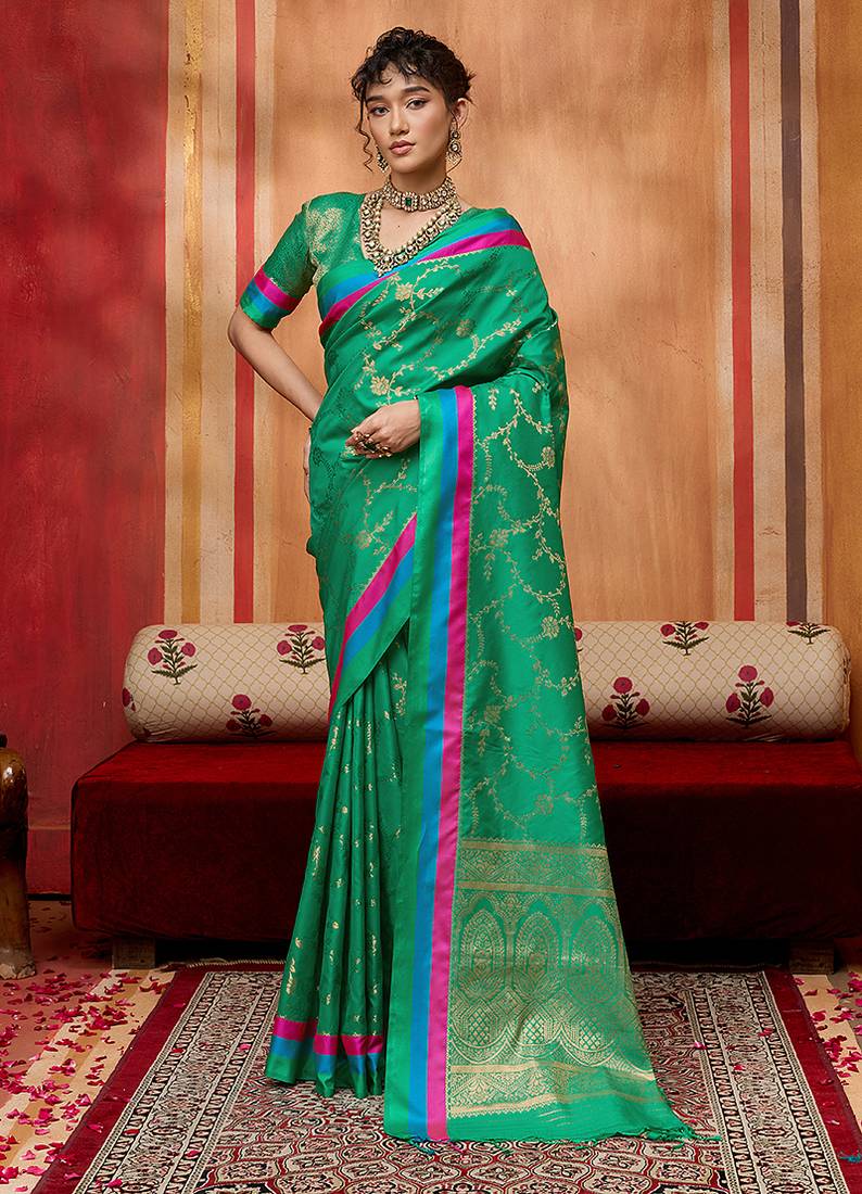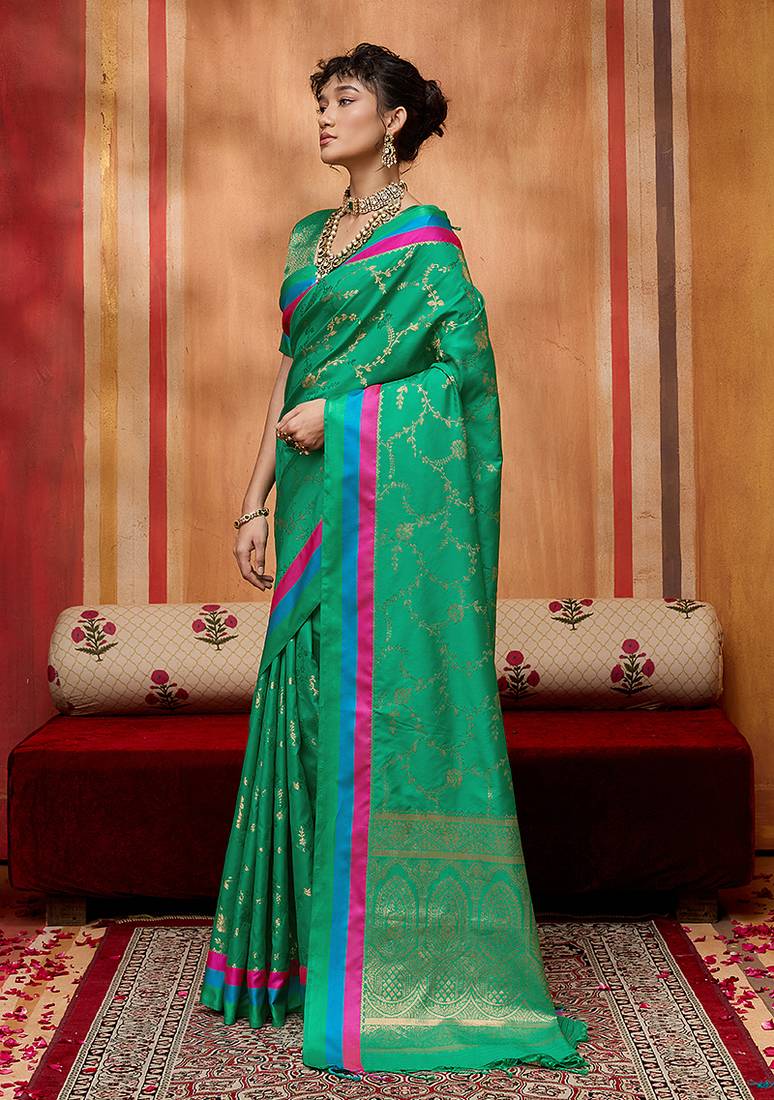 | Product Name | Sea Green Weaving Satin Art Silk Festival Trendy Saree | |