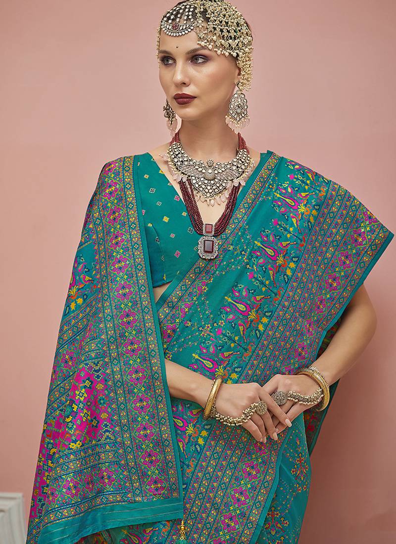 Teal faux banarasi art silk traditional saree with meenakari and weaving work