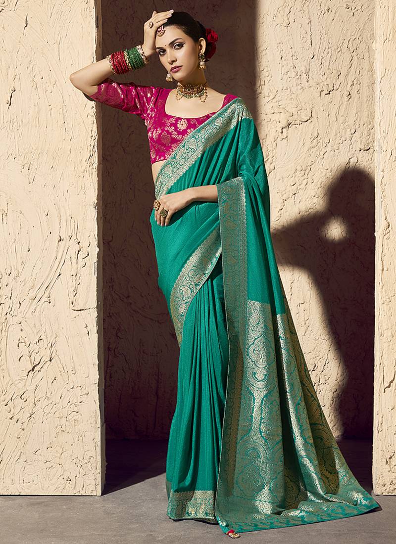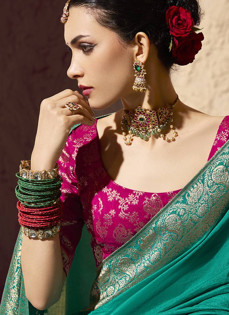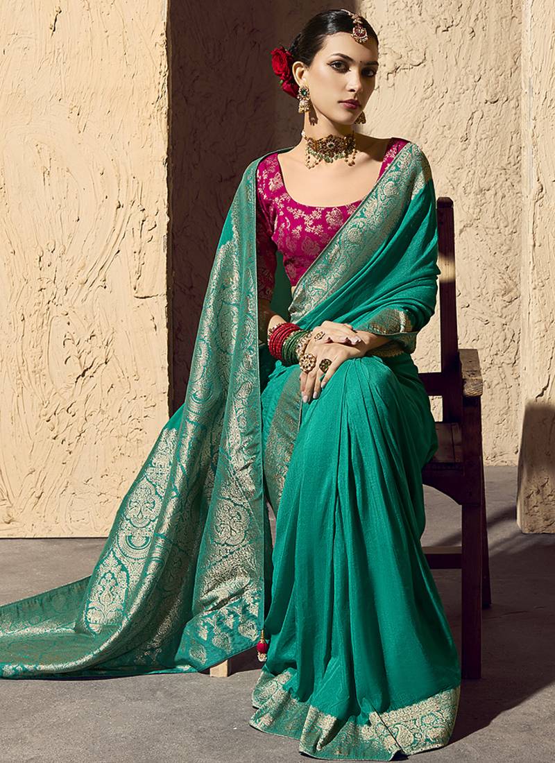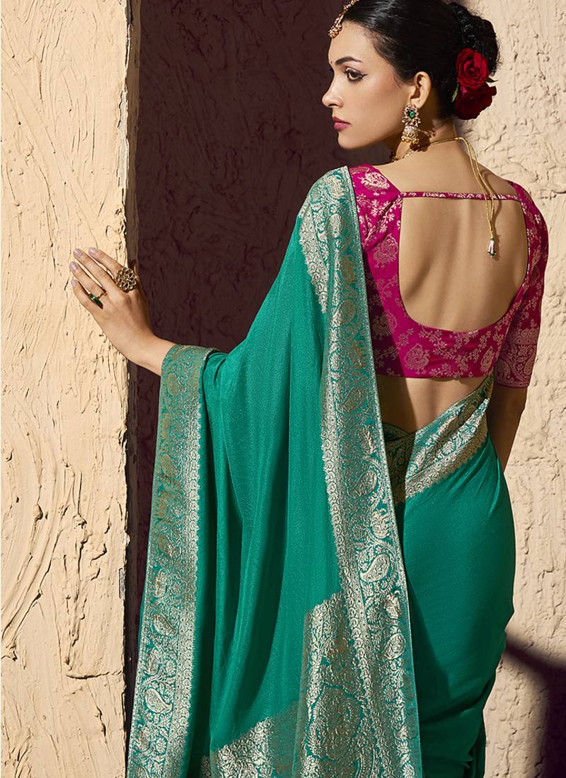 | Product Name | Teal Faux Crepe Georgette Zari Weaving Work Saree | |