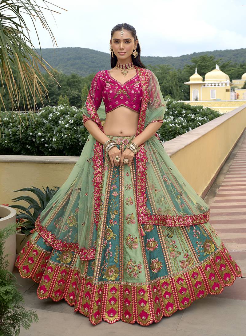 Turquoise & sea green embroidered art silk designer wedding lehenga choli